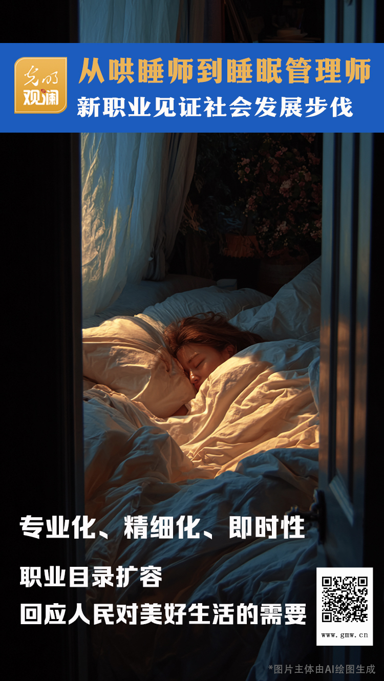 翻看近年来的职业清单更新,“睡眠健康管理师”其实很有代表性。上个月与它一同“上新”的还有旅拍定制师、生成式人工智能系统测试员、保鲜花制作工等17个新职业、42个新工种。它们大多与新的消费热点与产业趋势相伴相生,呈现出专业化、精细化、即时性的特点,对于规范市场发展、激发产业活力有所助益。而对于公众来说,“新职业”的涌现,不只为劳动者提供了实现个体价值的新赛道,更是在传递一个信号:职业目录的每一次扩容,都是对人民美好生活需要的回应。经济社会的发展,最终都要转化为触手可及的,对人们生活品质的提升。(张尔冬)